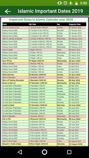 All New Islamic Calendar 2019 (Hijri) brings you current Islamic calendar based on lunar Hijri calendar and also Gregorian dates