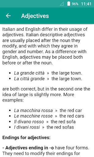 Итальянская грамматика Это применение очень полезно для тех, кто хочет изучать итальянский.Статьи