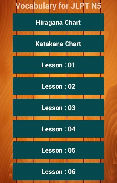 Полный список JLPT N5 лексики также Курсы японского языка - JLPT N5 лексики с ромадзи, а также здесь имеющейся диаграммы Катакана или Хирагана графике на Нихонго.
