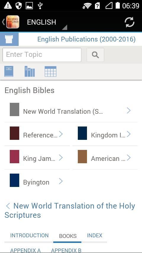 JW БИБЛИОТЕКА это бесплатное приложение на английском и испанском языках и включает в себя несколько переводов Библии, а также книги и брошюры для изучения Библии.