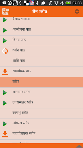 * Over the air downloading of audios. Click the orange icon against the Stotra to initiate the downloading of audios.