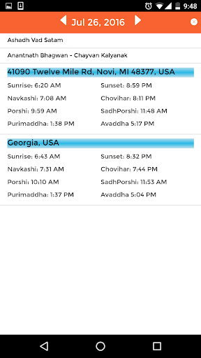is the best way to know tithi details on your mobile device. Features in app include notifications a day before, ability to toggle and filter data you need or feel is relevant for your use, display sunrise, sunset, navkashi, chovihar, porshi, sadhposrshi, purimandha and avadha information based on your location anywhere in the world and for any location you entered. Convenient and user friendly swiping.