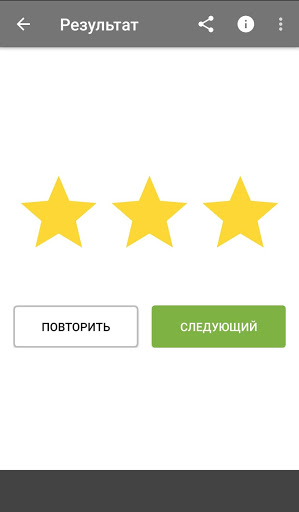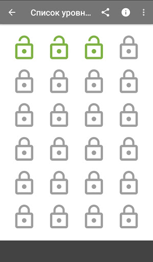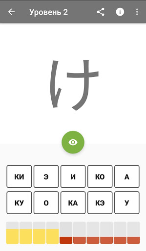 В приложении все слоги разбиты на 24 уровня. На первом уровне предлагается пять гласных, на каждом последующем количество слогов увеличивается до десяти - пять новых, плюс пять из пройденных. Доступ к следующему уровню открывается, если количество ошибок не больше трех и при этом ни разу не была нажата кнопка просмотра ответа.