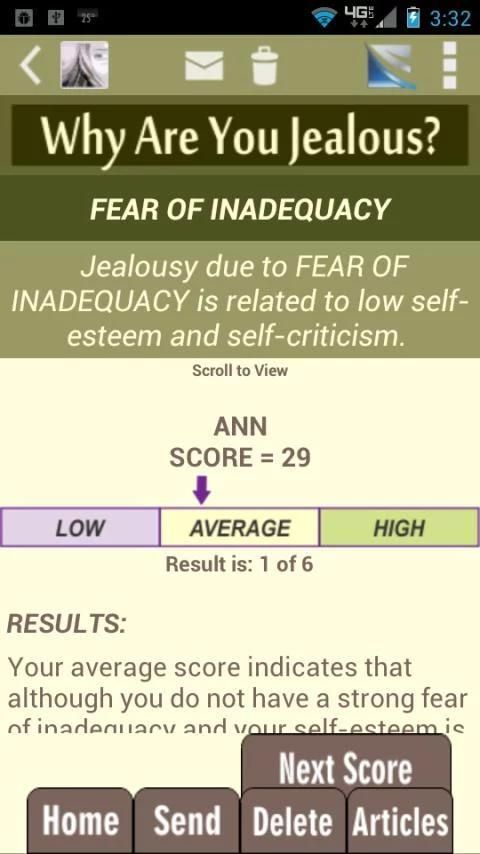 Оценивает причины, почему у вас ревность, если вы уже показали, что у вас есть проблемы. Тем не менее, не определить, если у вас есть проблемы. Содержит сведения о страхах, которые вызывают иррациональное ревность: Страх неадекватности, страх плохое самочувствие, страх потери эго, страх потери, страх быть поврежденным, и страх уязвимости.