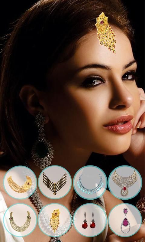 Украшения Photo Editor приложение поможет вам пикап различных Jewellry предметов, как наборы ожерелья, серьги, Серьги драпировками, Алмазный Jewellry наборы, алмаз и золотые украшения наборы из коллекции ювелирных изделий и попробовать на вас, как они смотрят на ваше тело.