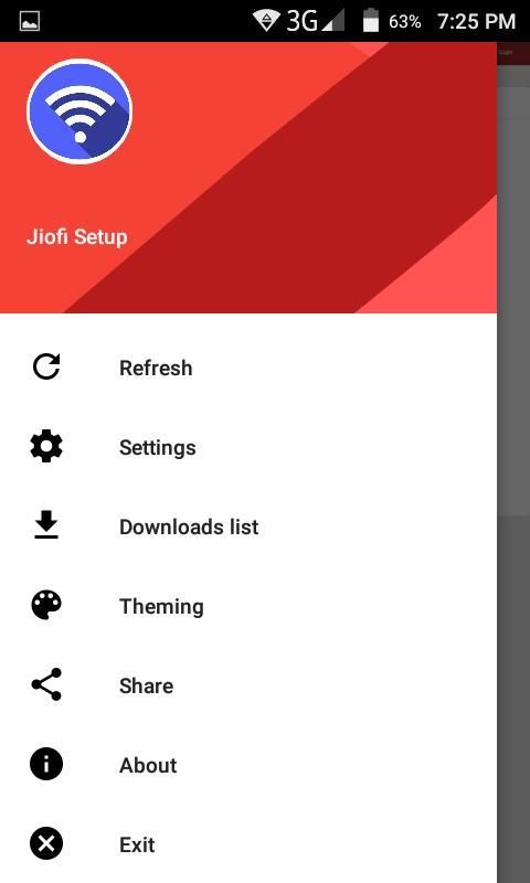 Hotspot менеджер дисплеев Jiofi»Подробная информация в том числе процентных батарей и список пользователей, подключенных к JioFi Hotspot. Пользователи могут также изменить пароль и имя сети SSID легко с одним нажатием кнопки. Существует также возможность заблокировать любого пользователя от подключения к точке доступа. Постоянное уведомление также отображается в строке состояния, которая указывает на батарею и пользователей, подключенных.
