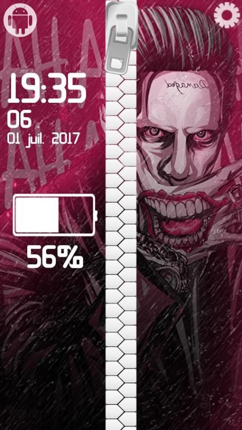 Joker Zipper блокировки экрана приложения для блокировки телефона, как легко заблокировать мобильный телефон, просто сжать и разархивирования. Потяните вниз крючок на экране, чтобы разблокировать экран и потяните его вверх, чтобы заблокировать экран и почувствовать эффект молнии.