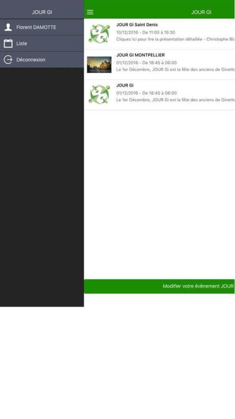 Приложение "Ginette выпускников День Gi" предназначен для того, чтобы каждому члену, который хочет с момента своего смартфона или планшета, чтобы пригласить на встречу близких членов из дома, а во-вторых, чтобы позволить всем члены определить совещаний, проводимых близко к дому, а также зарегистрироваться для участия в одной из них.