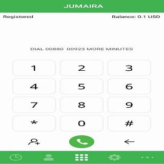 Jumaira - это мобильное приложение для платформы VoIP, которая работает как терминал для создания вызовов VoIP. Он использует протокол SIP и требует службы передачи данных GPRS / 3G / 4G или Wi-Fi. Это приложение предназначено для поставщиков услуг VoIP и конечных пользователей. Поставщики услуг должны предоставлять свой мягкий переключатель IP и порт, и они получит код оператора для их обслуживания. Настраиваемое фирменное решение также предусмотрено для поставщиков услуг. Конечный пользователь требует кода оператора, имя пользователя и пароль, предоставленные из поставщика услуг. Функции: