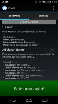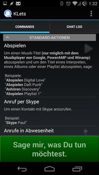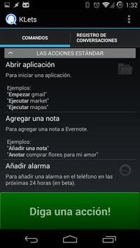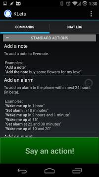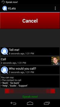 Remember that KLets uses Voice Recognition technologies provided by Android phones (usually it is Google Voice Search, but alternative voice recognition engines can be used, like Vlingo), and that most engines require an internet connection (Google Voice Search requires it, but on Jelly Bean phones it can be configured to work in offline mode).
