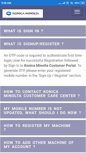 Konica Minolta Customer Service Portal – App to register Online Service request by Customer