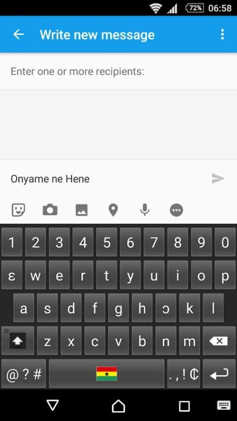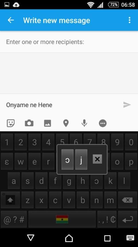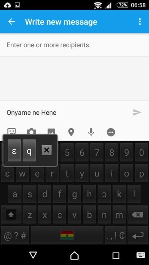 Это приложение позволяет пользователям печатать или общаться на языке тви. Тем не менее, если пользователь хочет использовать английские символы, такие как д и J, просто нажмите ɛ или ɔ в течение двух секунд, и эти ключи будут всплывал. Приложение не отображается на экране устройства, когда downloded, она должна быть активирована в настройках устройства.
