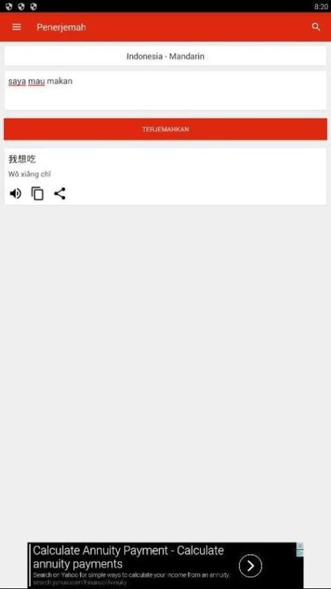 В этом приложении также можно перевести функции второго предложения в китайском и индонезийском, Mandarin словарь приложения индонезийский и индонезийский мандарин, можно использовать в автономном режиме, функция online.Kamus Мандарин переводчик расположен в алфавитном порядке. Вы можете нажать на кнопку, чтобы отобразить алфавит со словом, которое начинается с буквы.