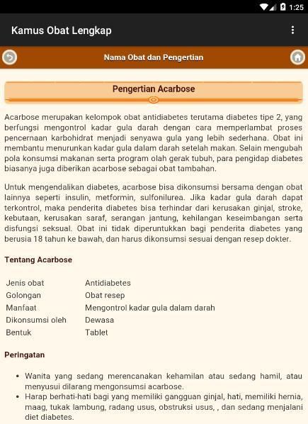 Это приложение содержит информацию о лекарственных препаратов, таких как тип наркотиков, пособие по наркотикам, наркогруппировки, потребленных ребенка или взрослого и формы медицины и список лекарств, Индонезии и их функции, то объяснение дженериков это имя одного и того же лекарственного средства с активным ингредиентом питательны содержит, в соответствии с официальным названием Международное непатентованное имен, которые были установлены в индонезийской Фармакопеи.