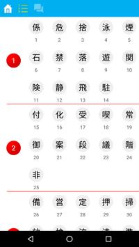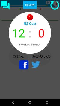 The Kanji are divided into many lessons. You can take quiz for just one lesson. You can take quiz for 7 continuous lesson. Have the review function after the tests. Can review all kanji in N2 game