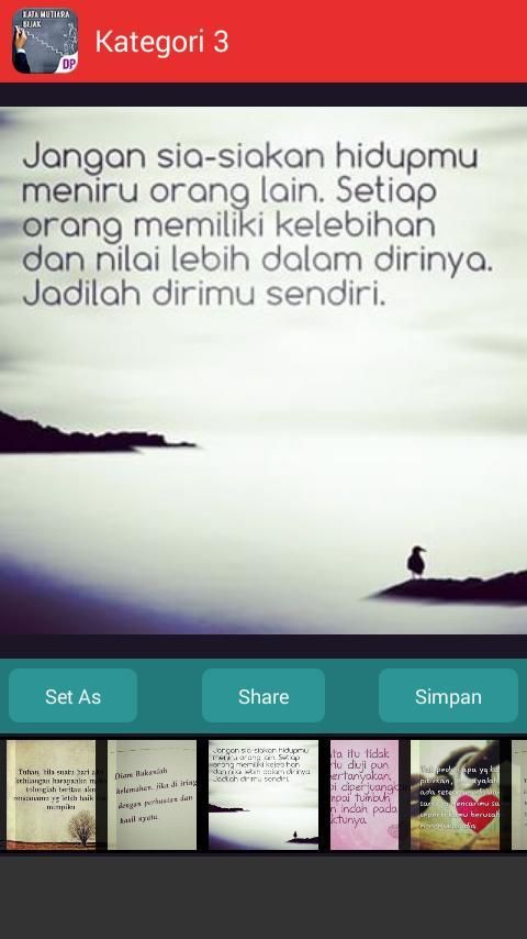 Мудрый слова жемчужина digunak по мотивации, чтобы мотивировать их, чтобы стать больше страсти, чтобы жить этой жизнью. С последними словами жемчужные, вы можете использовать DP становится BBM, так что они становятся более энтузиазм и быть мотивированным. Слово к мудрым жизни, как вашего вдохновения в живых превратностями жизни.
