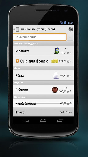 поможет с легкостью составить список продуктов, благодаря всплывающим подсказкам, и подсчитать стоимость купленных товаров.