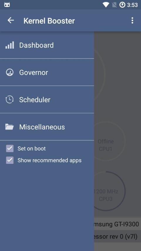 Ядро Booster должно быть приложение для любого корневого пользователя. Ядро Booster является самым простым приложением для настройки ядра и контроля. Просто установите губернатора и просто настроить его для увеличения срока службы батареи или производительность слайдер. Ядро Booster также позволяет выбрать планировщик согласно влияние на вашу жизнь батареи, многозадачности или производительности. Можно также изменить другие функции ядра, такие как настройки MIN / MAX частота, режим ожидания процессора, и многое другое.