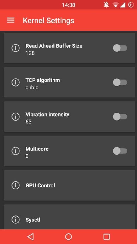 С ядром менеджера вы можете выполнить следующие настройки своего ядра (если ядро поддерживает их)