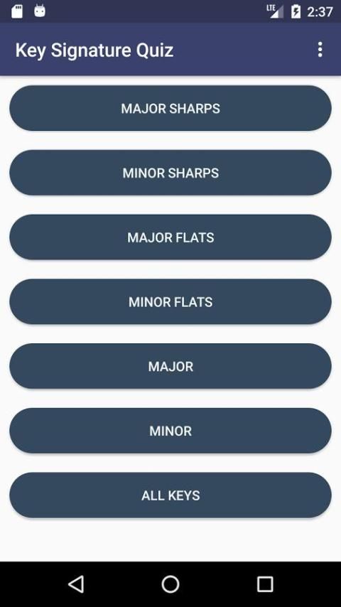 Это приложение проверяет вашу способность распознавать все различные ключевые подписи в музыке. У вас есть ограниченное количество времени, чтобы угадать каждый ответ. Если вы хотите, вы можете сосредоточиться только на основные и второстепенные подписях или на диезах / Квартире.