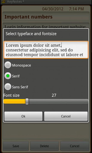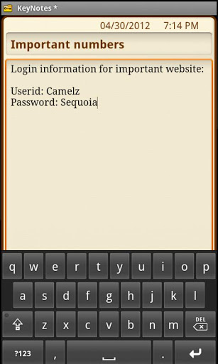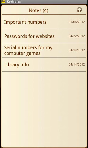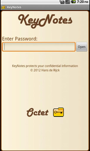 Keynotes is ideal as a secure storage of passwords, serial numbers, access information, pincodes or general notes you want to protect.