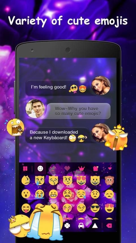 Беспокойство о неправильном печатать? Emoji клавиатуры это ваш лучший помощник! предсказание смарт слово, слово будет отображаться, когда вы просто ввести два или три алфавитов, а затем выбрать слово, ваше хотение, хорошо для избежания неправильного печатать!