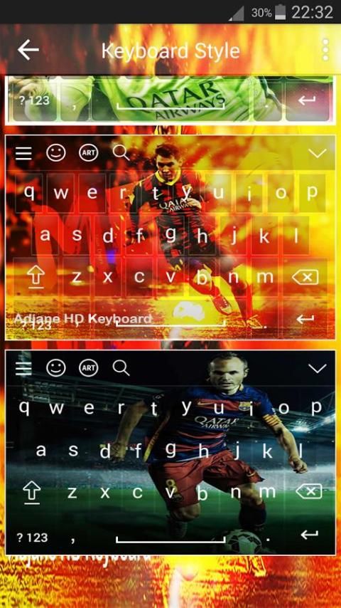 Клавиатура для темы ФК Барселоны является приложением, которое может изменить нашу клавиатуру с Messi и Суаресом и Inesta и Бускетсом и Пике темой, очень интересной и интерактивной, потому что в ней есть различные темы футбола, которые могут быть выбраны в соответствии с нашими пожеланиями.