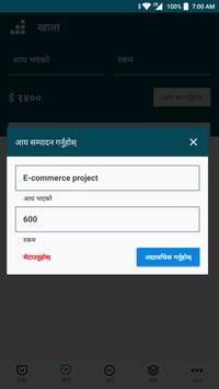 provides you a simple and easy to use accounting for personal use. Khata records your daily transactions, keeps track of your money, records money that you kept somewhere around as a saving and shows your wallet fund right at the touch of your hand.