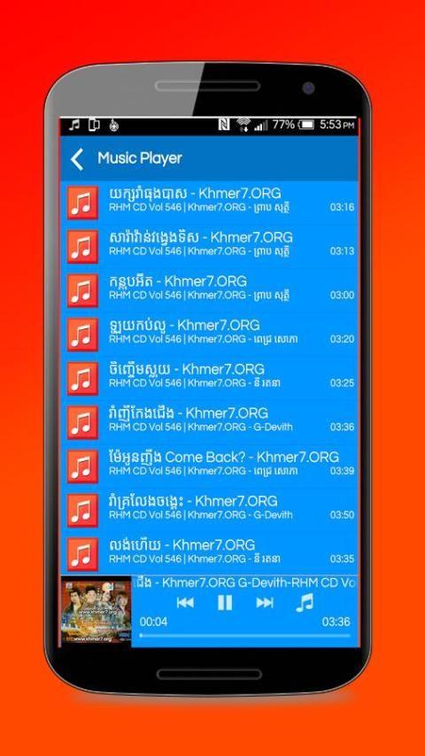 Красных Song Игрок является лучшим приложением для кхмерской, которые можно использовать для проигрывателя музыкальные файлы Ot файл видео быстро и легко .Эта аудиоплеер поддерживает практически все типы MP3, MIDI, WAV, FLAC сырые ААС файлы и видео игрок может поддерживает все видео форматы файлов, включая MP4, WMV файл, файл RMVB, MKV файл, 3GP файл, M4V файл, файл MOV, файл TS, MPG файл, FLV-файлов и т.д. и другие видео и аудио форматов в вашем телефоне устройстве.