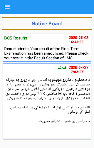 3. Notice Board: Provides you all notices issued by Khurasan University. It also updates you about all happenings at Khurasan University.