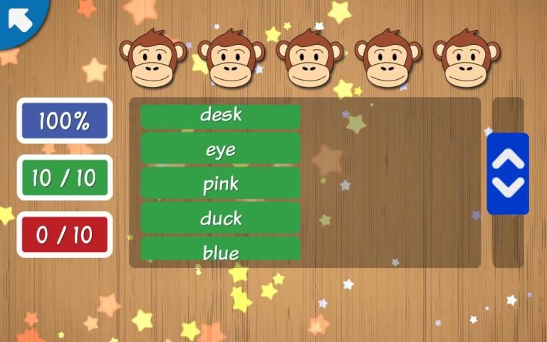 1) Проверка орфографии упражнения, написание английских слов: изображение показывается для каждого слова с буквами слова в случайном порядке. Угадайте слово и поместить буквы ниже изображений в правильном порядке,