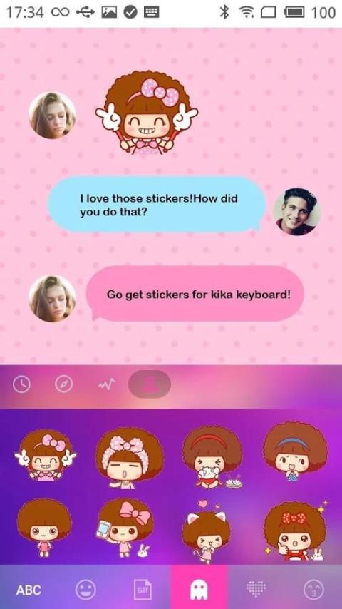 ☑1. Скачать Кика Emoji Клавиатура приложение & Mocmoc девушка стикер приложение;