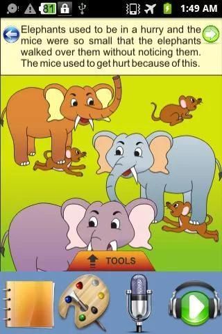 Однажды король мышей сказал: "Многие из нас получают больно каждый день, потому что слоны ходят над нами. Это высокое время. Я буду говорить с их царем завтра и просить о пощаде. "Согласился каждый.