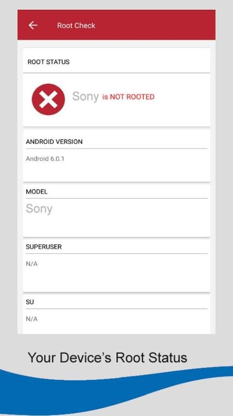 Примечание: Root Check не корень устройства. Она не изменяет системные файлы. Единственная цель приложения, чтобы проверить, имеет ли устройство корневого доступа. Он также предоставляет полезную информацию о укоренении и ромов для Android.