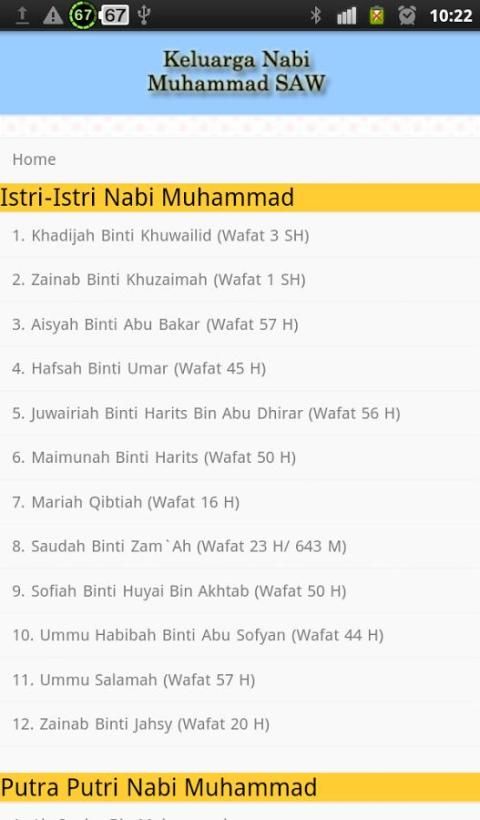 Aplikasi INI berisi Kisah hidup дари Келуарга Наби Мухаммад САС. Kisah Ян dicakup diantaranya Istri, Анак, Куку дан РАМАМ beliau.