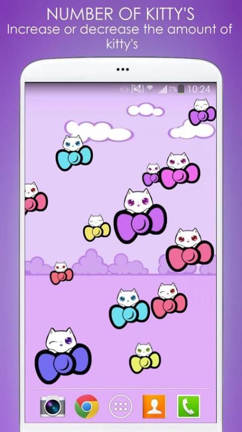 Всем привет! ... Это Китти Симпатичные милые и обожающих живые обои ти много цветной Китти. Whith Китти Симпатичные можно вытереть Китти ти простого прикосновения. Также вы можете играть, протрите как многие Китти можно (можно показать или скрыть точки в фоновом режиме).