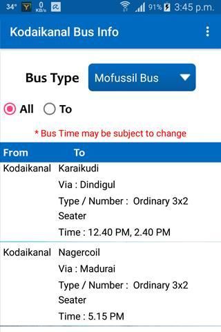 Это приложение предоставляет всю информацию о Кодайканале Mofussil автобус и автобус города.