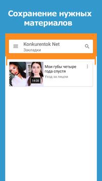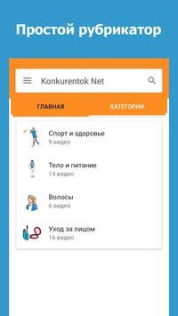 Konkurentok Net - это приложение собравшее отобранный видеоконтент с полезной информацией для женщин. Здесь вы найдете короткие видео от разных экспертов по темам связанных с красотой, здоровьем и уходом за собой в домашних условиях. А также советы о том как похудеть, какую косметику подобрать и как сделать правильный макияж!