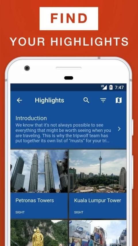 ✓ Загрузить приложение в автономном режиме и использовать карту Куала-Лумпур, путеводитель и поездка планировщик без подключения к Интернету