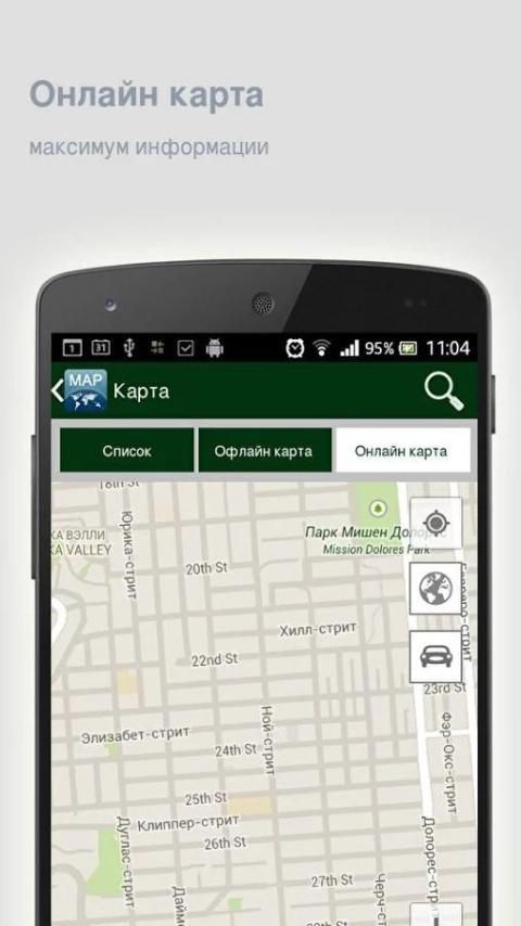 1-ая карта: Оффлайн карта. Ее можно скачать в зоне действия Wi-fi и использовать без Интернета.