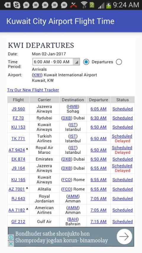 Kuwait City Аэропорт Время полета, Время прибытия / выезда Время. Вы получите информацию о рейсах из этого приложения. Эта информация получает от FlightStats - Global Flight Tracker.
