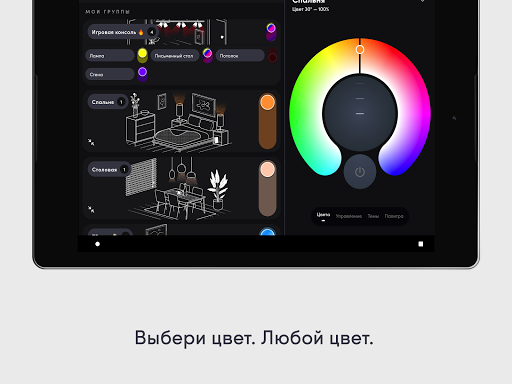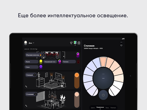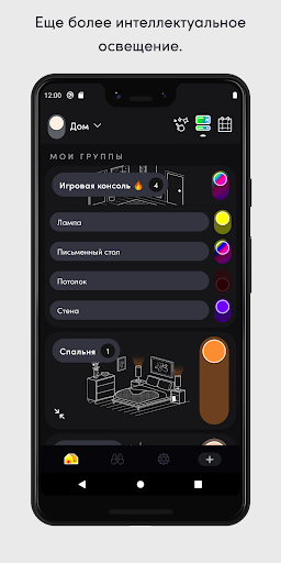 - Группы: легко управляйте всеми источниками света в группе, активируя включение/выключение и регулирование яркости одним касанием с домашней панели инструментов.