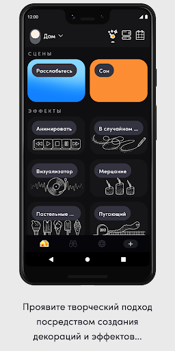 - Эффекты: играйте со специальными эффектами, такими как музыкальный визуализатор, огонь, движение, мерцание свечи, стробоскоп, цветовой цикл и многое другое, все в одном месте.