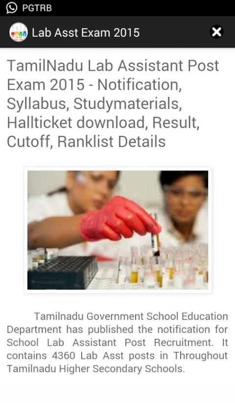 Департамент Тамилнад правительство Образование Школа решили провести лабораторный ассистент экзамен 2015 по 31.5.2015. Этот экзамен будет проводиться набор в 4036 Лаборатории ASst сообщений. Таким образом, наша команда даст много учебных материалов с Скачать PDF объекта, Samacheer Kalvi книги скачать, лаборатории уведомления ассистент экзамен. Кроме того, теперь мы будем предоставлять Тамилнад лаборант экзамен тест бесплатно онлайн модели для кандидатов.