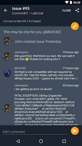 С помощью LabCoat вы можете управлять проектами, создавать проблемы и даже принимать запросы на слияние с вашего устройства.Мы - 3 Gitlab и хотели создать полностью изготовленное приложение, уроженец Android.С Labcoat вы можете: