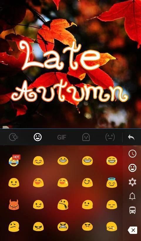 - Установить клавиатуры тему Новые бесплатные TouchPal Поздняя осень Emoji ---> Нажмите его значок ---> Он будет включен по TouchPal Emoji клавиатуры автоматически!