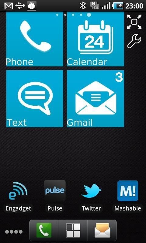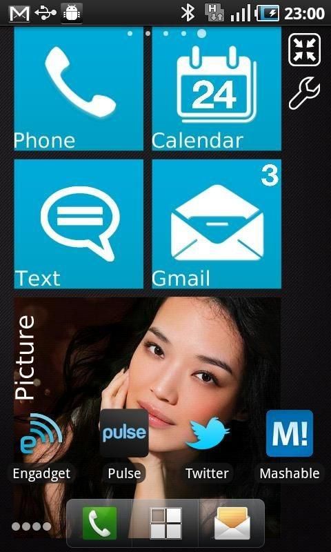 Launcher Box is a Live Wallpaper inspired by the UI of Windows7. You use this app by setting it as a Live Wallpaper on your home screen. Launcher Box shows you unread SMS, Miss Call, and GMail notification count right on the screen. Like a windows 7 phone, you can tap on the blue box to launch the default app or any app of your choice. You can go into Settings > Wallpaper Editor to assign any app to launch at any time. It also include a dynamic picture box that runs photos of your chosen folder in slide show style. You can customize the slide show transition style, speed and timeout. This picture box can be turn on or off quickly by the control button at the top right corner of the live wallpaper. The default background is empty (black), you could set an additional background using any photo within your phone to match this Live Wallpaper. Use the tool button on this Live Wallpaper to set. Let us know your comments for further development of this livewallpaper. And if you like it, help rate the app. Internet access permissions are used for advert. Recent changes: run as standalone Content rating: Everyone