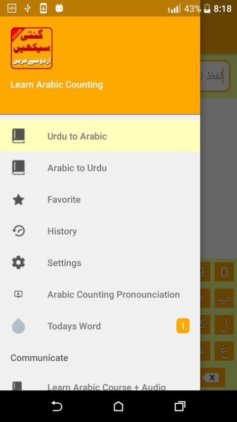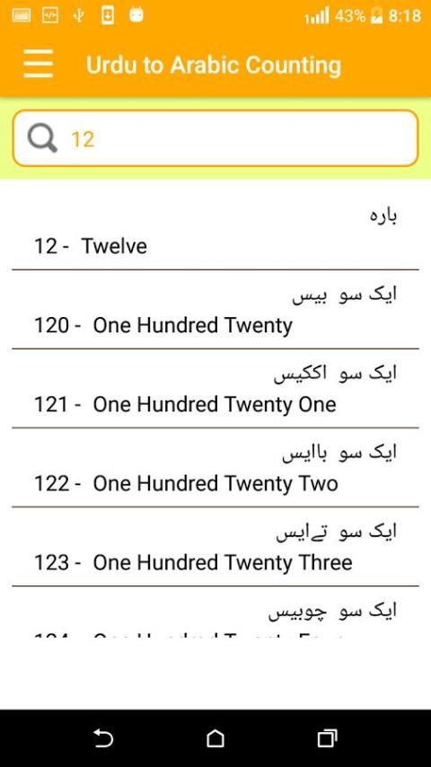 Вы можете искать с Урду на арабский и арабский языки урду из этого Counting обучения приложения без интернета. Это приложение включает 999+ подсчета слов.