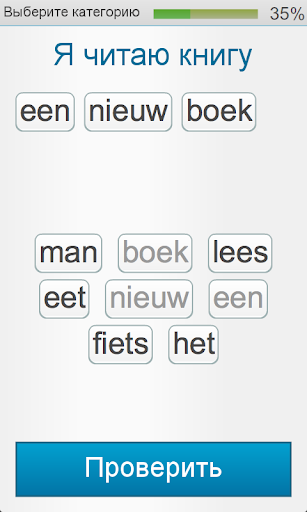 Изучение голландский путем узнавания слов и изображений, нахождения недостающих слов, составления и построения предложений.