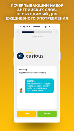 Словарная карточка каждого изучаемого слова содержит полное определение на английском языке, перевод на русский язык, до 10 примеров использования, фонетику, произношение носителем британского акцента и другие детали, необходимые для их качественного изучения и погружения в тему. , поэтому Вы сможете сразу воспринимать речь на слух. Благодаря уникальной методике обучения Вы запомните изучаемый материал очень и очень надолго.